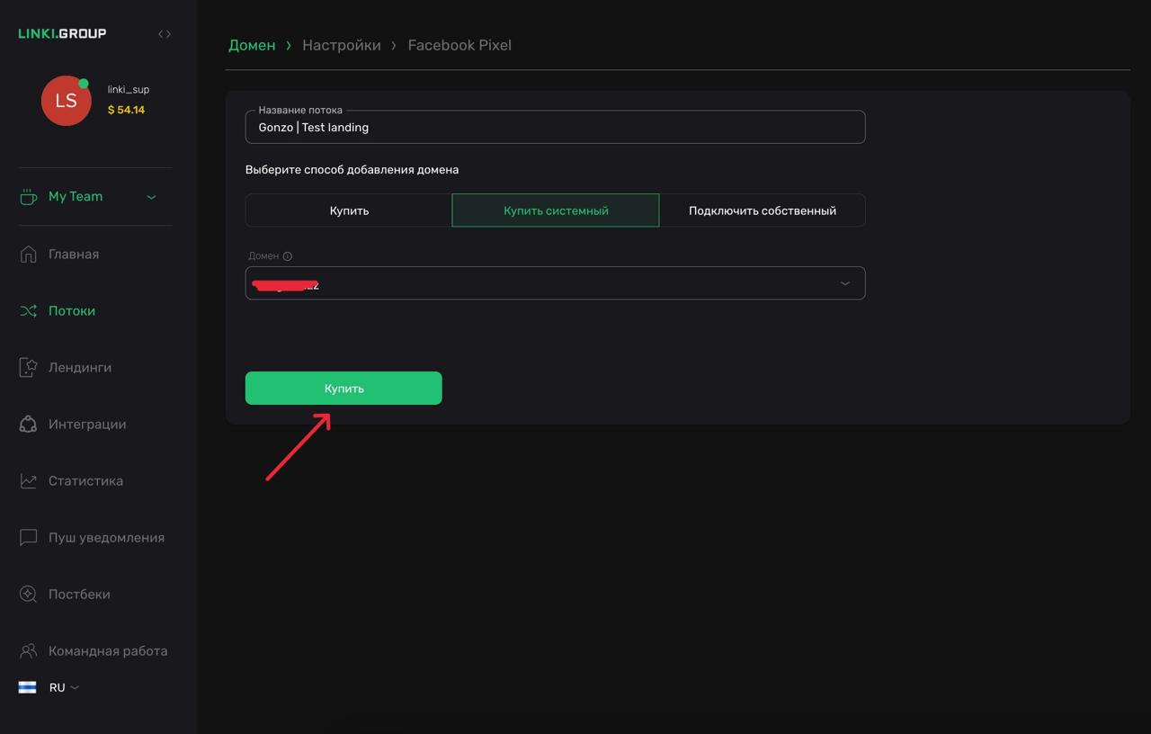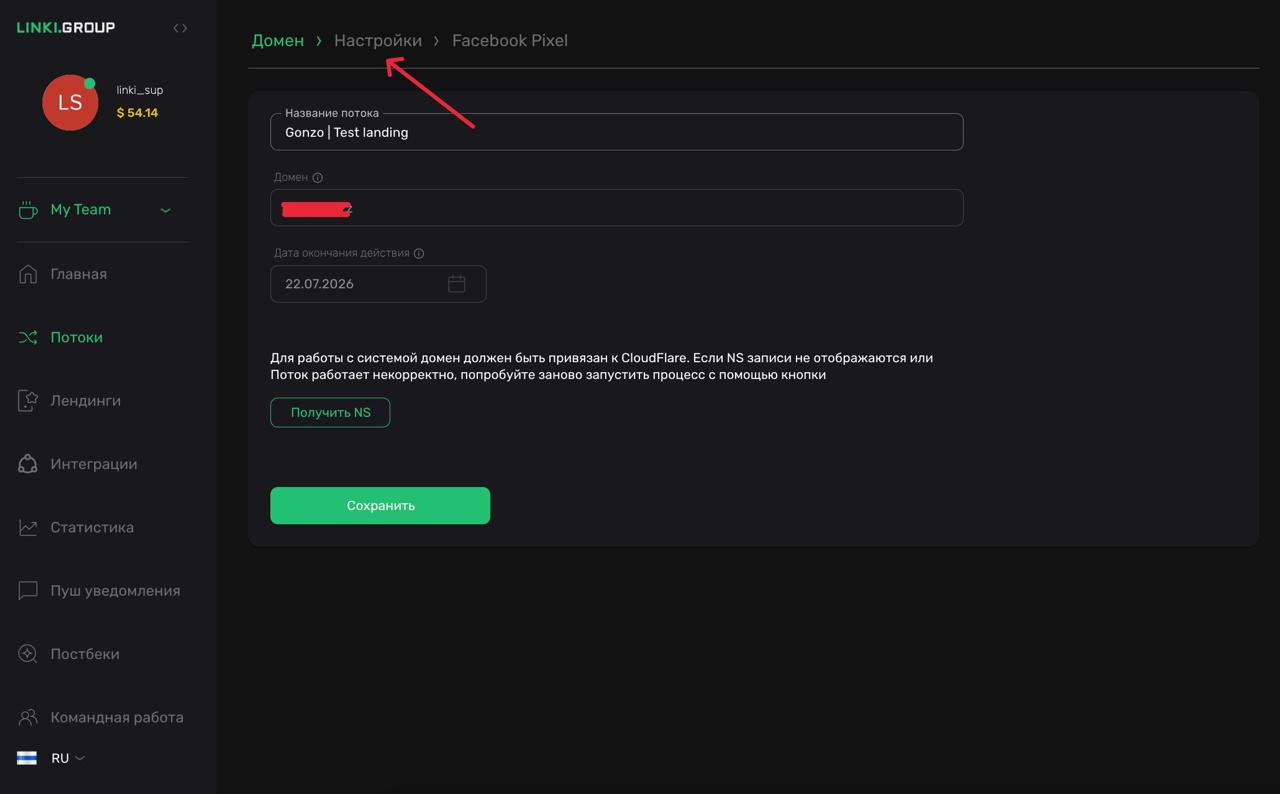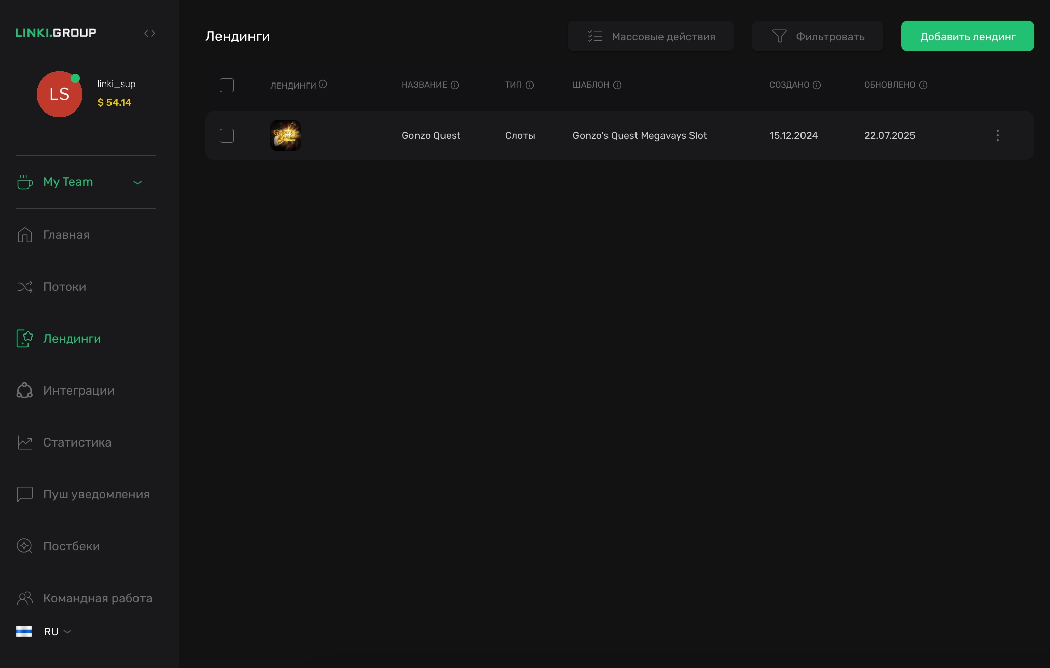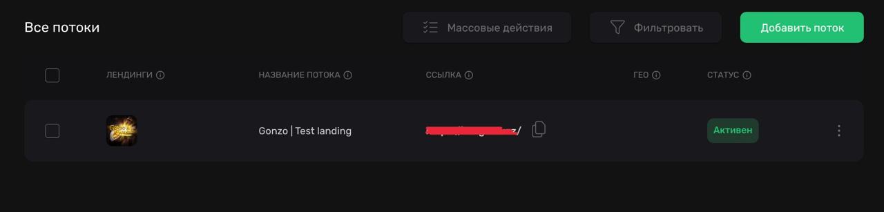 Если сделали все корректно - то созданый лендинг (поток с Линки) должен подтянуться в списке.