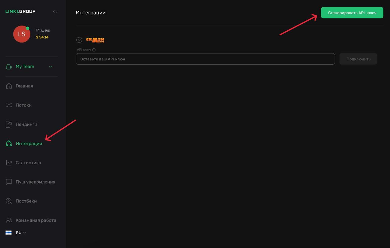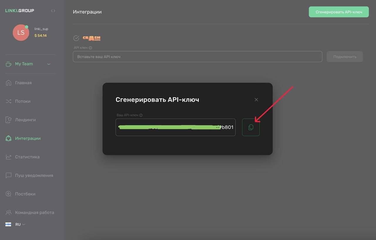 Нажимаем кнопку Сгенерировать API-ключ (если он не создан ранее).